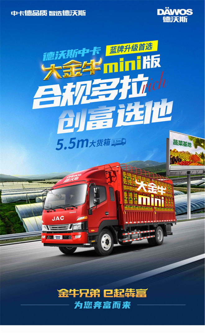 江淮德沃斯深知,一切從用戶出發,才能贏得市場,因此江淮德沃斯大金牛2.0新品在洞察物流模式和用戶習慣變化所帶來的細分市場需求后,通過對政策法規、貨物類型、物流工況等五大因素進行系統分析,結合城市、城郊、城鄉、城際場景,推出了針對性的產品解決放方案,分別用大金牛mini版、大金牛pro版來對應不同細分市場卡車司機作業的要求。