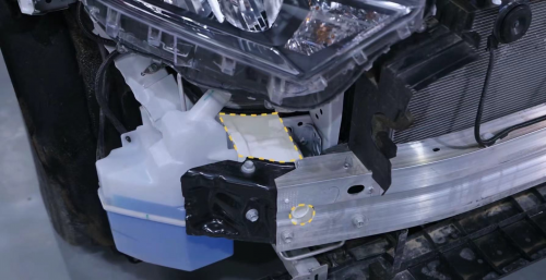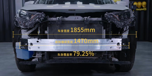 兩車在經過了常規的車身結構、漆面厚度、漆面抗劃程度的監測之后,便進入了兩車的拆解對比環節。在車頭部分,卸下前保險杠后經過實測,哈弗大狗采用了凹型的高強度鋼材質防撞梁,而豐田RAV4榮放則采用了鋁合金材質的防撞梁。但在結構上,豐田RAV4榮放的防撞梁沒有吸能盒的設計直接安裝在了車體的縱梁上,一旦發生碰撞容易出現外擴的情況,對防護效果會造成一定程度的影響。