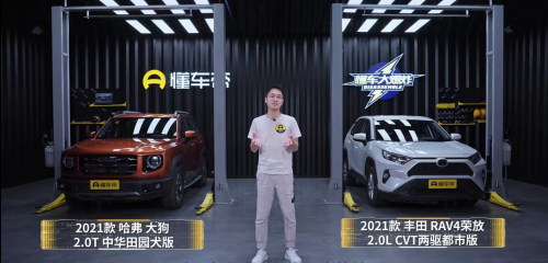 在近期專業汽車媒體懂車帝的原創拆車節目《懂車大爆炸》當中,哈弗大狗與豐田RVA4展開了一場正面對抗,通過對車輛的完全拆解我們得以直觀了解到以哈弗大狗為代表的國產品牌在近年來所取得的長足進步,并逐步取得對同級合資產品的領先優勢。在欄目當中,參與對比的車型分別為指導價15.59萬元的哈弗大狗中華田園犬版和指導價17.58萬元的豐田RAV4榮放CVT兩驅都市版。