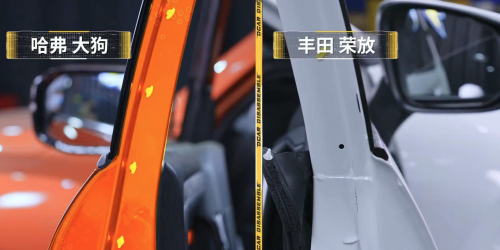 而在車門的制作工藝上,豐田RAV4榮放的車門采用了兩段焊接式的制造工藝,不僅在美觀度不如哈弗大狗的一體焊接車門精致,結構強度上也遜色不少。