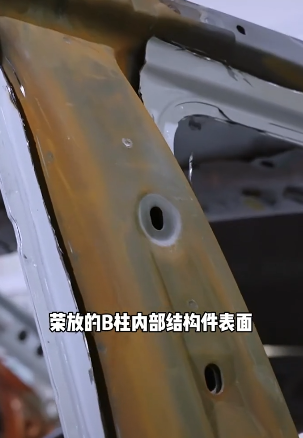 但事實上車輛的白車身通常都應該進行過電泳工藝,即便是在高度潮濕的環境下也不應該出現大面積的銹蝕情況,顯然此次拆解的這臺榮放,其電泳工藝或存在一定問題。而像B柱這樣的關鍵性結構件出現不可逆的銹蝕情況長期發展會對車身的結構強度造成影響,進而影響安全性。