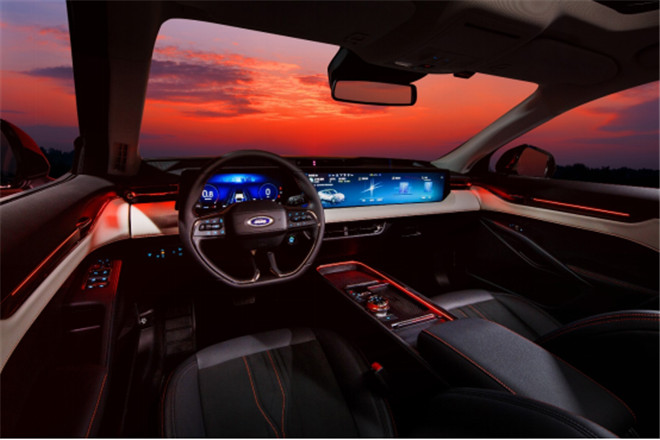 面對造型上的全面升級,新一代蒙迪歐在內飾方面自然也不會令人失望,內飾更加注重營造科技氛圍。這次新車大手筆的配備1.1米超廣域高清屏,橫向貫穿整個中控臺,營造出令人驚艷的視覺沖擊力,直接將內飾的科技氛圍拉滿。這可比時下流行的雙連大屏更加給力,還照顧到了副駕乘坐者的娛樂需求,呈現出的真4K畫面質感高級,視覺體驗媲美影院屏幕的觀感。