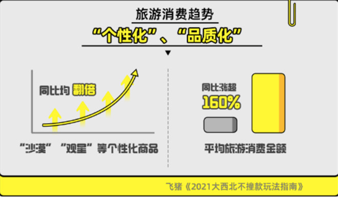 飛豬旅行在2021年7月發(fā)布的《2021大西北不撞款玩法指南》數(shù)據(jù)顯示:觀察年輕一代的旅游趨勢(shì)可發(fā)現(xiàn),結(jié)合地方特色優(yōu)勢(shì)、自駕、露營(yíng)、越野等元素的房車旅游等新興消費(fèi)已在中國(guó)部分地區(qū)呈現(xiàn)出越來(lái)越火爆的趨勢(shì)。