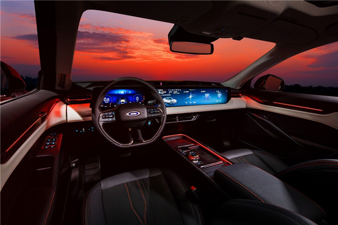 面對造型上的全面升級,新一代蒙迪歐在內飾方面自然也不會令人失望,內飾更加注重營造科技氛圍。這次新車大手筆的配備1.1米超廣域高清屏,橫向貫穿整個中控臺,營造出令人驚艷的視覺沖擊力,直接將內飾的科技氛圍拉滿。這可比時下流行的雙連大屏更加給力,還照顧到了副駕乘坐者的娛樂需求,呈現出的真4K畫面質感高級,視覺體驗媲美影院屏幕的觀感。