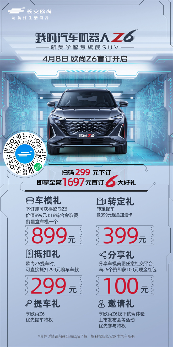 汽車機器人 Z6 神秘能量盒車模發售,299元下訂即享1:18鋅合金珍藏車模、抵扣299元購車車款、轉定提車送399元加油卡、Z6優先提車特權等六重福利!