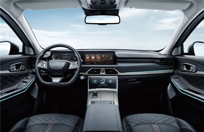 福特領睿內飾有單色和黑白拼色,布局簡約干凈;采用雙12.3英寸一體式智聯屏,懸浮設計,造型規整,搭配平底方向盤,顯得非常簡潔,沒有過多的裝飾讓車內看起來很通透。