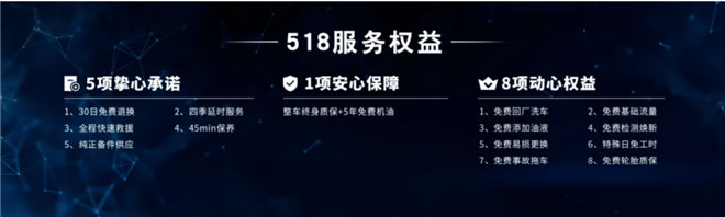 購買奔騰T99可享一汽奔騰的518服務權益,包含5項摯心承諾、1項安心保障、8項心動權益。有30日免費退換,四季延時服務、全程快速救援,還有免費添加油液、特殊日免工時費、免費基礎流量等等,購買、使用、保養、維修都涵蓋在內,能為車主省下不少費用,而且也更省心。