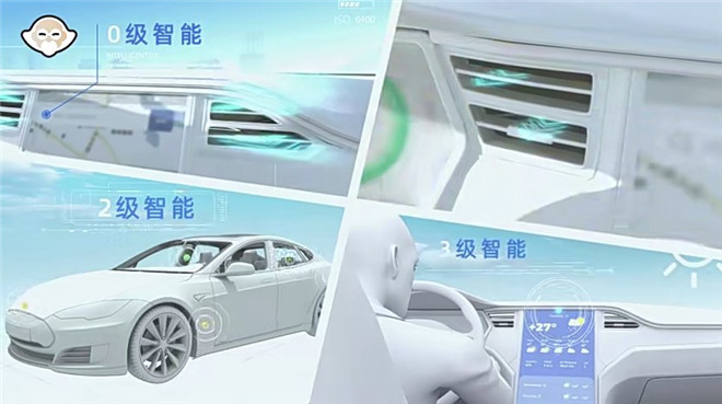 3、 2級智能:通過多個溫度傳感器實現自動開啟空調、檢測內部區域溫度變化從而自動調整不同出風口出風量等自動化功能;
