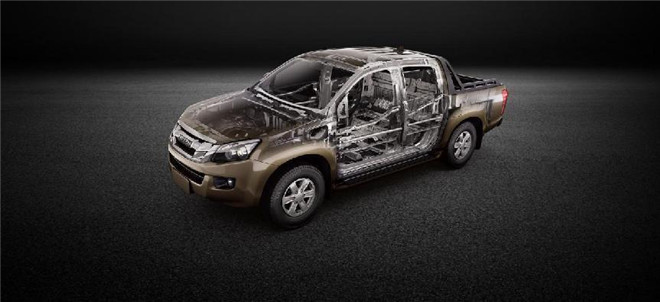 在車(chē)身安全上,鈴?fù)夭捎昧伺c全球車(chē)型D-MAX同平臺(tái)的高剛性底盤(pán)系統(tǒng),大截面縱梁結(jié)構(gòu),加強(qiáng)了車(chē)輛的承載力和安全性,四門(mén)防撞鋼梁與雙面鍍鋅鋼板,提升了車(chē)輛的全面防護(hù)能力,駕駛室雙安全氣囊,保障駕駛者的頭部安全,這種全面提升的車(chē)身剛性對(duì)于車(chē)輛行駛的舒適性和靜謐性也有著一定的幫助。