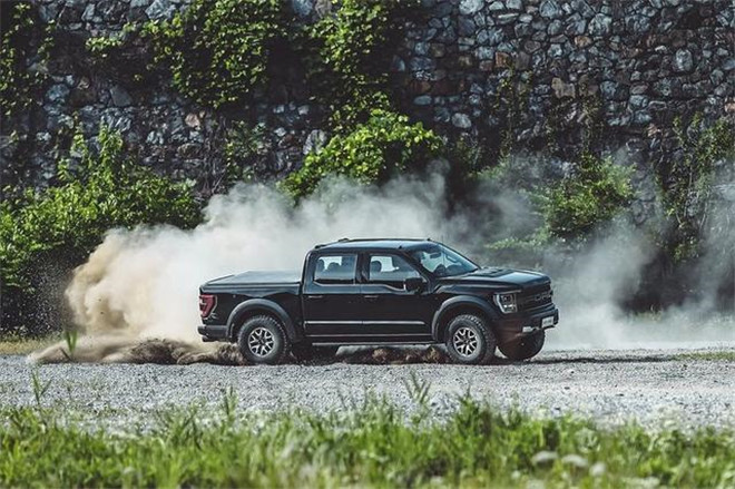 第三代福特F150猛禽,搭載3.5L EcoBoost V6雙渦輪增壓發動機,最大功率 423馬力,峰值扭矩 684牛·米,匹配福特自家的10AT變速箱。