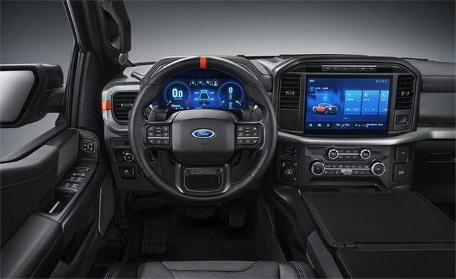 全新一代福特F-150猛禽配備全新12.4英寸儀表盤與12英寸LCD彩色觸摸屏組合,升級了SYNC+智行互聯系統、Co-Pilot360智行駕駛輔助系統、以及福特在業內首發的車路協同系統。此外,全新一代福特F-150猛禽還標配18個揚聲器的B&O高級音響系統。
