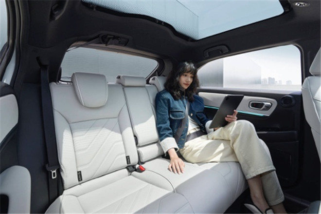 此外,e :NP1極湃1的車身在設計之初便追求「光」與「風」的通透感,特別采用了分段式大全景天幕設計。在保證車身剛性的同時,將天幕分成前后兩個獨立區間,前排帶有電動遮陽簾,后排采用左右獨立的遮陽簾,精心考慮了后排每一位乘客的需求。高隔熱全景天幕(帶遮陽簾)采用Honda最高等級的低輻射玻璃,可以阻隔90% 以上的紫外線和紅外線,無懼炎炎夏日,帶來更多涼意和清爽。