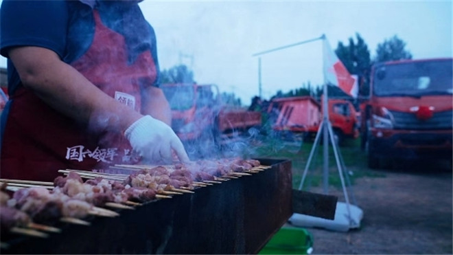碰杯、交談、歡笑、歌唱,現(xiàn)場(chǎng)氣氛十分火爆。領(lǐng)航中卡邀請(qǐng)了享譽(yù)卡車界的燒烤大師親臨現(xiàn)場(chǎng),一展驚艷的廚藝。巨形燒烤箱上各類美食來(lái)回翻滾,色香味俱全,美食讓人胃口大開。