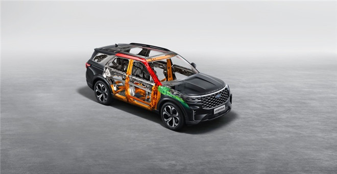 全新福特探險者的這些特點,就體現出長安福特在看不見的地方的tough,全車高強度鋼比例達到50.8%,同時車身也采用了至高1700兆帕超高強度馬氏體鋼。對比到同級的中大型SUV產品——大眾途昂,其600兆帕以上鋼材占比僅有25%-31%。同時有著“公路坦克”稱號的沃爾沃XC60在鋼材硬度上最高也只達到1500兆帕,而全新福特探險者則用到了1700兆帕超高強度馬氏體鋼,差不多可以承受三頭成年亞洲象的重量,當之無愧的同級最強籠式車身。