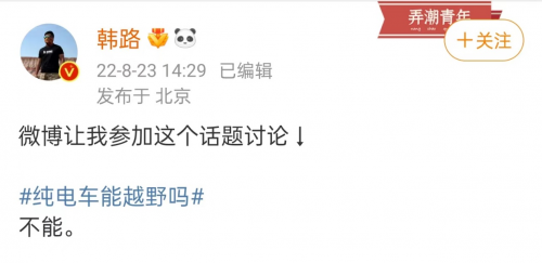 車圈大佬直截了當(dāng)?shù)膬蓚€(gè)大字評論,就內(nèi)涵了當(dāng)下純電越野技術(shù)路線的不成熟。