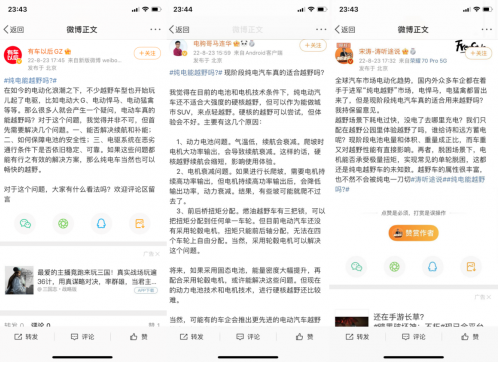 這話題也曾在微博上發(fā)酵,話題下的評論清一色地表達(dá)了對當(dāng)下純電越野的不自信。總結(jié)起來,當(dāng)下純電不能越野,最根本的原因在于越野與電的先天矛盾尚未解決: