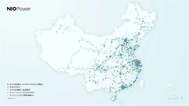 9月30日,蔚來打通山東半島城市群高速換電網絡和吉林省高速超充網絡,滿足用戶在自駕途中的加電需求。