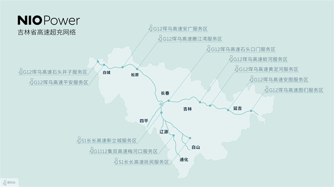 蔚來打通山東半島城市群高速換電網絡、吉林省高速超充網絡