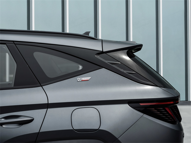 在當(dāng)下這個(gè)看臉的時(shí)代,高顏值車型往往令人眼前一亮,而途勝L N Line自設(shè)計(jì)之初便深諳其道。在外觀造型方面,途勝L N Line沿襲參數(shù)化設(shè)計(jì)主題,同時(shí)還傳承著現(xiàn)代汽車高性能N品牌的賽道基因,加入了更多細(xì)節(jié)化運(yùn)動(dòng)元素,如打造了235/55 R19專屬酷黑鋁合金輪轂,并在輪轂中間添加了標(biāo)志性的“N”字母元素,低調(diào)且吸睛。同時(shí),雙側(cè)單排氣管附著在車輛背面下端,后擾流板采用更明顯的銀色設(shè)計(jì),營(yíng)造出獨(dú)具特色的運(yùn)動(dòng)氛圍。