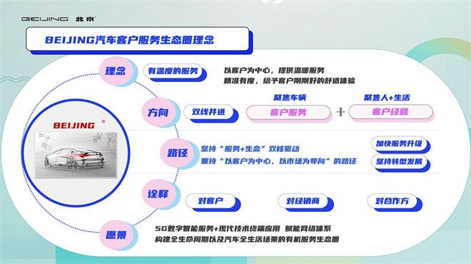 除了三重寵粉計劃,北京汽車還發(fā)布了全新服務(wù)生態(tài)規(guī)劃,意味著一個覆蓋車輛全生命周期和用車全生活場景的有機服務(wù)生態(tài)圈構(gòu)建完成,通過北京汽車App,為更多用戶打造一鍵無憂、悅享智惠生態(tài)圈,讓用戶來了就不想走,讓每一個需求都有回音,每一份熱愛都有共鳴。