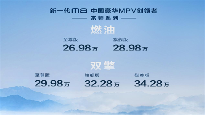 11月8日,作為中國MPV市場的壓軸之作,傳祺M8宗師系列正式上市,售價26.98萬元-34.28萬元,提供燃油和雙擎混動共5款配置車型。