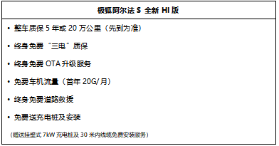 而在配套服務權益方面,極狐汽車更針對阿爾法S全新HI版車主推出尊享權益,為消費者用車生活保駕護航。