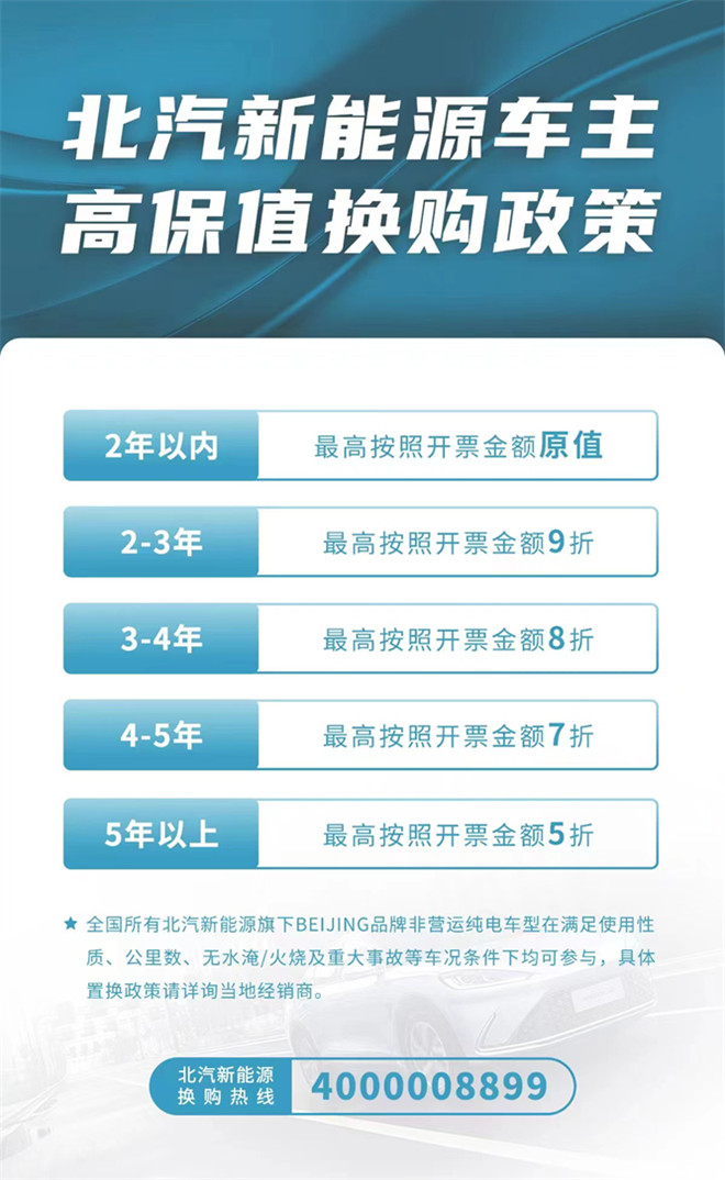 敢買不敢換,一直是新能源車購(gòu)車用戶的最大顧慮。北汽新能源想用戶所想,推出了堪稱行業(yè)之先的“高保值換購(gòu)“政策,一舉擊破低保值率的行業(yè)堅(jiān)冰。針對(duì)購(gòu)車2年內(nèi)的北汽新能源老用戶,可享受最高按照開票金額原值換購(gòu),相當(dāng)于“免費(fèi)”開2年后直接升級(jí)換新車,從而可獲得包括極狐阿爾法S全新HI版、阿爾法S、T等全新產(chǎn)品的高端品質(zhì)體驗(yàn)。購(gòu)買超過(guò)2年的舊車,換購(gòu)補(bǔ)貼力度同樣遠(yuǎn)超行業(yè)水平,可根據(jù)不同車型、年限、里程、車況等對(duì)應(yīng)享受最高9折、8折、7折、5折等梯次豐富的高額置換政策。