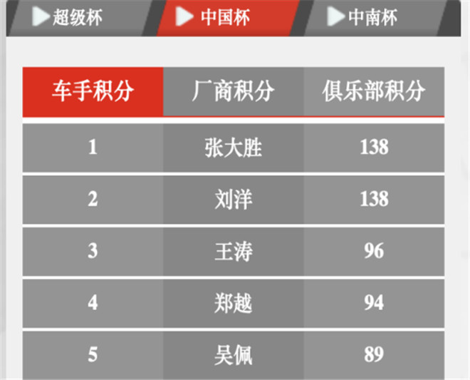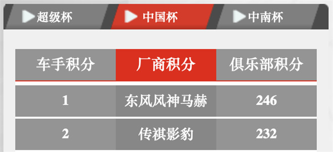 2022年CTCC經過株洲、紹興兩站比賽的激烈角逐,東風風神馬赫車隊目前位列中國杯廠商積分第一名,領先第二名傳祺影豹車隊14分,在車手積分排行榜中,馬赫車隊劉洋則與影豹車隊張大勝以相同的138分并列第一。