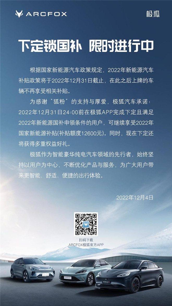 距離國家新能源補貼退場僅剩不到二十天,各大廠商也進入“期末大考”的黃金時期。相比于一些品牌的逆勢漲價行為,極狐汽車則顯得有人情味多了,推出“國補退坡極狐補”的限時保價活動,保你銀行卡余額富余的同時,還保你用車無憂!