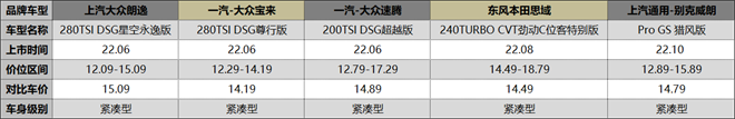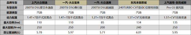 為更直觀進行數據比對,本次決選特選擇近一年上市的新車型,分別為售價15.09萬元的上汽大眾朗逸280TSI DSG星空永逸版(以下簡稱:朗逸)、售價14.19萬元的一汽-大眾寶來280TSI DSG尊行版(以下簡稱:寶來)、售價14.89萬元的一汽-大眾速騰 200TSI DSG超越版(以下簡稱:速騰)、售價14.49萬元的東風本田思域240TURBO CVT勁動C位客特別版(以下簡稱:思域)、售價14.79萬元的上汽通用別克威朗Pro GS獵風版(以下簡稱:威朗)。