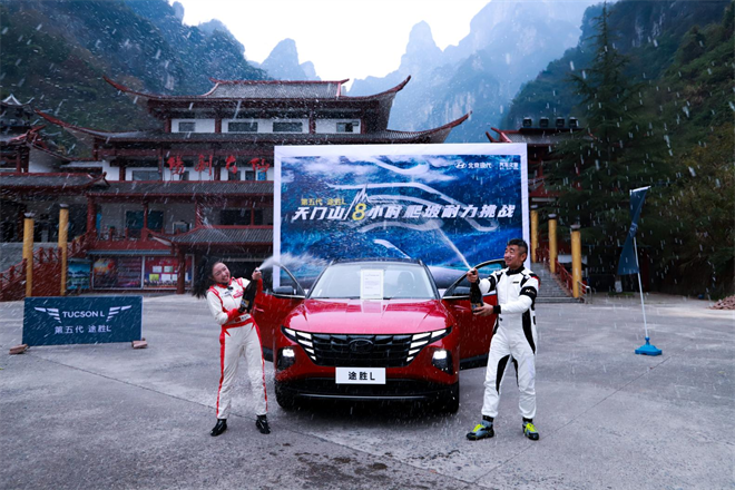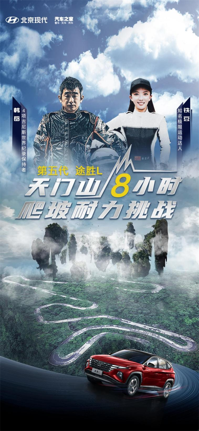 最近,全能車手、4項世界吉尼斯記錄保持者、數屆國際拉力賽冠軍韓岳,攜手知名美女車手、戶外運動達人、賽車文化推廣者鐵豆,共駕北京現代第五代途勝L來到張家界天門山,進行8小時爬坡耐力挑戰,上演了一場絕壁上的駕駛。