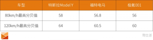 另外在靜謐性上,我也順帶測(cè)試了80km/h和120km/h的噪音NVH表現(xiàn),表現(xiàn)最好的就是極氪001,不愧是三臺(tái)車中車廂材質(zhì)用料最好。主觀表現(xiàn)最差的是特斯拉,主要是因?yàn)闊o(wú)框車門和隔音材料的缺失,不愧為成本控制大師。除了這套低滾阻環(huán)保輪胎的胎噪比較大外,而福特電馬的表現(xiàn)是最近極氪001。