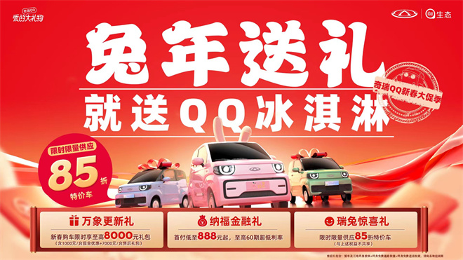 新春年貨季,奇瑞新能源X徐福記喜迎甜蜜官宣,通過爆款聯名年貨禮盒、線上H5有獎互動等玩法,打造國民爆款“CP”。更有奇瑞新能源新春大促活動,限時享至高萬元禮包、限時限量供應85折奇瑞QQ冰淇淋特價車等多重好禮,就等你參與!趕緊置備你的新春品質“年貨”,一起Q樂過福年吧~