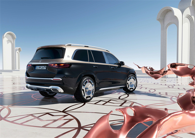 新一代梅賽德斯-邁巴赫GLS SUV采用邁巴赫標志性的豎直格柵設計,以豎直鍍鉻飾條與“MAYBACH”精致字樣的輝映,彰顯至臻尊崇的不凡氣度。車頭下方兩側的進氣口處,數枚邁巴赫徽章錯落有致,輔以鍍鉻包圍裝點,凸顯精致細節。新增帶高光飾面的23英寸邁巴赫經典鍛造輪轂,行進間盡顯威儀,同時令整車極具品牌辨識度。標配的動態邁巴赫徽標迎賓燈投射于車身兩側,以優雅的動態迎賓燈效果,伴行賓客啟程。