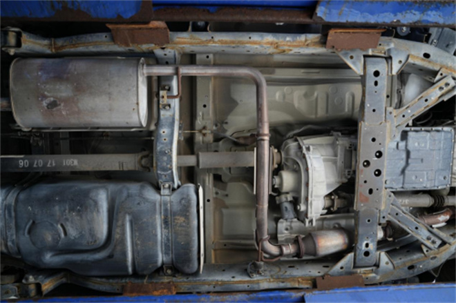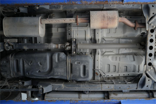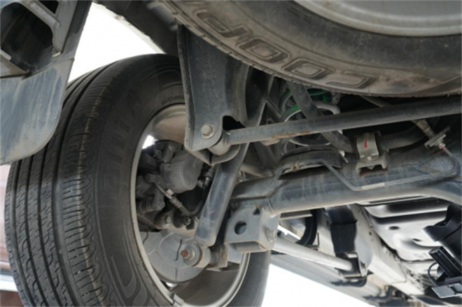 雖然后懸架都是鋼板彈簧非獨立懸架,但是納瓦拉后橋鋼板彈簧為橋下簧,不如橋上簧的承載強度高,且離地間隙也低了一些,越野適應性低了一點。耐用性方面也有提高空間,鋼板彈簧的U型螺栓和吊耳均為烤漆,非鍍鋅件;排氣管吊耳為2點式,容易松動;底盤電線不整齊、裸露、簡單用扎帶固定。