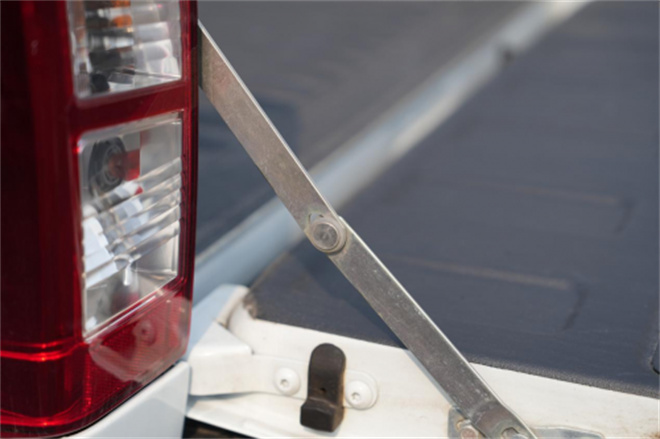 作為一輛皮卡,貨箱實用性是最重要的一項指標。鈴拓的貨箱尺寸為1480x1530x480mm,內板為4塊鈑金。支撐橫梁也有4根,承載強度更高。當然貨箱寶也必不可少,對于貨箱鋼板有更好的保護。另外,尾門采用鍍鋅鋼制鉸鏈式拉索,可以更好的承受頻繁開關尾門。