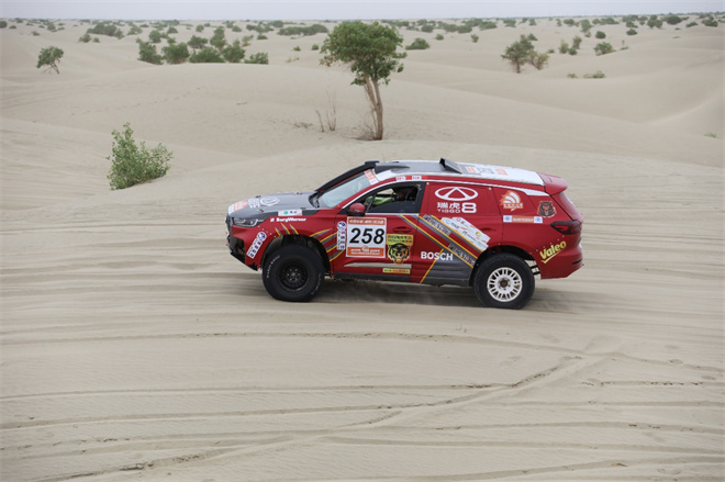 在連續數日、行駛里程已超1700公里的環塔征戰中,奇瑞瑞虎8車隊相繼征服了砂石、暗溝、沙海等極端越野路況,以唯一家用城市SUV的身份與百萬級賽車同場競技,并以極致的性能表現一路恣意馳騁、笑傲于南疆的環塔拉力賽賽場。