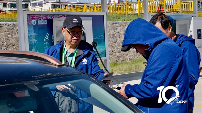 除了外觀設計評測之外,今天上午參與賽事的車輛還在青海湖二郎劍充電站進行了補電。本屆賽事得到了國網青海省電力公司的大力支持。據國網青海省電力公司海南供電公司營銷部工作人員張子琰介紹,為更好保障第十屆環青海湖(國際)電動汽車挑戰賽,公司提前一個月就開始了籌備工作,“我們制定了詳細的方案,針對運維、營銷、充電樁的調試等方面,都做了詳細的部署。”