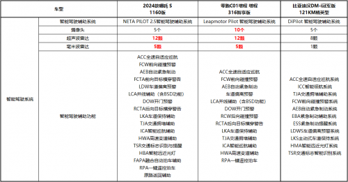 對(duì)比之下,另外兩款車(chē)不少功能都有缺位。例如,零跑C01的交通標(biāo)志識(shí)別與提醒、融合自動(dòng)泊車(chē)輔助、原路返回輔助等都未配備,漢DM-i冠軍版也缺少了疲勞駕駛、并線輔助等用戶常用的功能,整體體驗(yàn)遜于2024款哪吒S。
