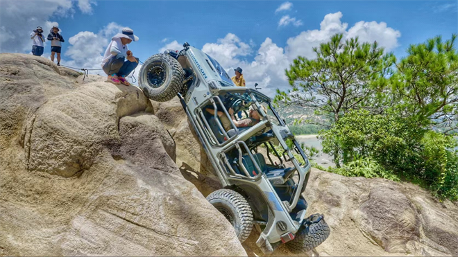 2023年,Jeep在越野領域也取得了卓越的戰績,其中以牧馬人挑戰三部曲為亮點。在庫木塔格沙漠的鍋底干拔挑戰中,牧馬人4xe成功攀登高溫40度、地表溫度60度的沙坡,展現了出色的動力性能和穩定輸出;在西藏楚拉埡口的高海拔攀爬中,牧馬人4xe通過低氧環境,克服海拔5400米的高原反應,展現了混合動力在雪域的可靠性;而在臺山浪琴灣的地獄級攀巖中,牧馬人4xe通過巧妙的改裝,在浪琴灣這個十級天花板難度的越野路線中取得了令人矚目的成績。