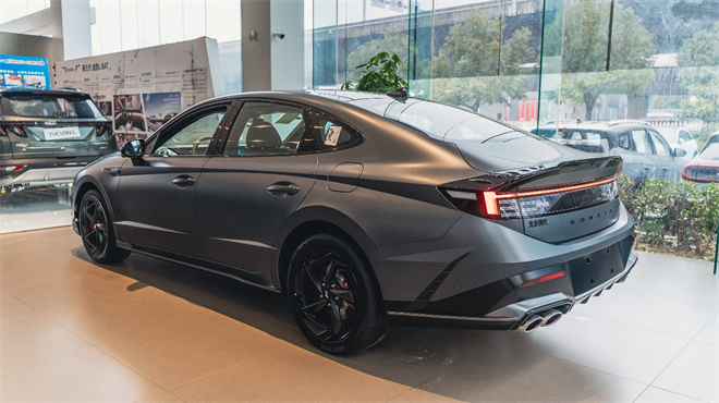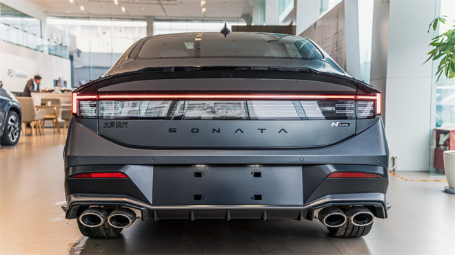 車尾采用貫穿式H型尾燈,與車尾其他元素融合度很高,力量感十足。N Line版本更是裝配黑色尾翼、四出排氣和后杠下的擴散器,時刻宣泄著現代“N Line”標的意義。