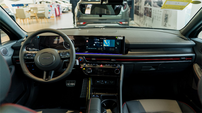 車身采用轎跑溜背式設計,線條干凈利落,增添幾份激情。而N Line版專屬五輻19英寸雙色輪圈和紅色卡鉗,運動感瞬間提升。
