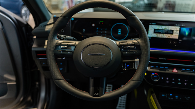 大家應該不難發現,方向盤上的現代標被一串小點點取代了。這其實是北京現代留下的小彩蛋,這串小點點換成摩斯密碼就是北京現代的意思。同時方向盤采用真皮包裹,手感不錯。