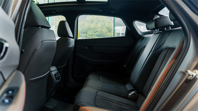 而后排座艙設計同樣出彩,帶有獨立出風口,雙TYPE-C充電接口,杯架等配置。值得一提的是,后排座椅無論是軟硬度,大腿支撐性還是靠北傾斜角度,坐著不累,符合人體工程學,滿足一款B級轎車對后排乘坐的所有條件。