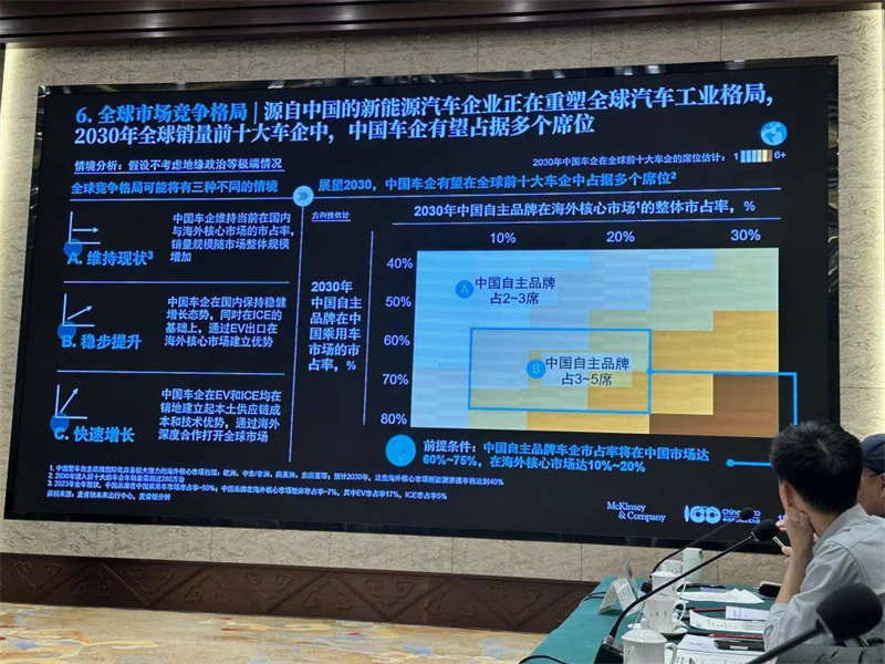 如果將視角轉(zhuǎn)向汽車行業(yè),會(huì)發(fā)現(xiàn)道理是一致的。隨著自主品牌借助新能源轉(zhuǎn)型實(shí)現(xiàn)彎道超車,尾部合資品牌陸續(xù)出局,國(guó)民正在支持自主品牌加速走向世界舞臺(tái)中央。自主品牌也沒(méi)有辜負(fù)國(guó)民信賴,據(jù)中國(guó)電動(dòng)汽車百人會(huì)與麥肯錫聯(lián)合發(fā)布的最新研究報(bào)告,到2030年,中國(guó)車企有望在全球前十中占據(jù)2至3個(gè)席位。