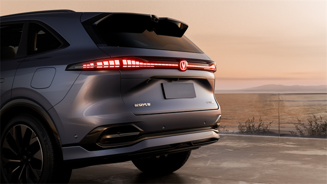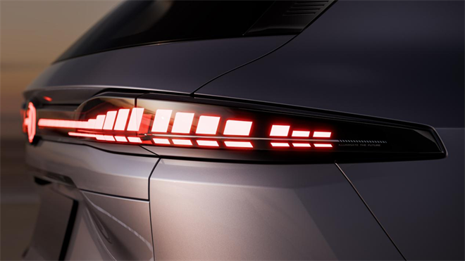 車尾也設(shè)計(jì)得很好,飽滿厚重,橫向拉伸的設(shè)計(jì)看起來(lái)很寬適。尾燈同樣有創(chuàng)意,用不同高度的面狀體光源,造型超有辨識(shí)度,科技感凸顯。