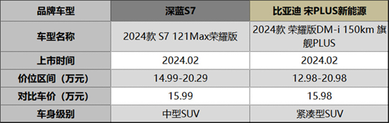 為助您做出明智選擇,我們對比了深藍S7 2024款121Max榮耀版(售價15.99萬元)與宋PLUS DM-i 2024款榮耀版DM-i 150km旗艦PLUS(售價15.98萬元)。接下來,我們將探討這兩款車的優勢與特點,助您找到更適合的車型。