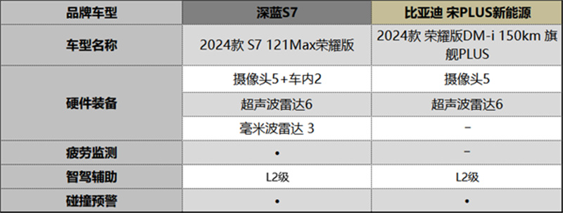 在智能駕駛輔助系統上,兩款車型均達到了L2級水平,但深藍S7在硬件配置上更為出色。它配備了比宋PLUS DM-i多出的兩個車內攝像頭和3顆毫米波雷達,這些先進的感知設備能夠更全面、精準地捕捉車輛周圍環境信息,從而提升智能駕駛的準確性和安全性。但深藍S7還具備宋PLUS DM-i所沒有的疲勞監測功能。這一功能能夠實時監測駕駛員的駕駛狀態,一旦發現疲勞駕駛的跡象,便會及時發出警報,提醒駕駛員休息或采取相應措施,確保行車安全。因此,在智能駕駛方面,深藍S7的配置更加豐富,安全性也更高,為駕駛者提供了更為全面、可靠的駕駛輔助。