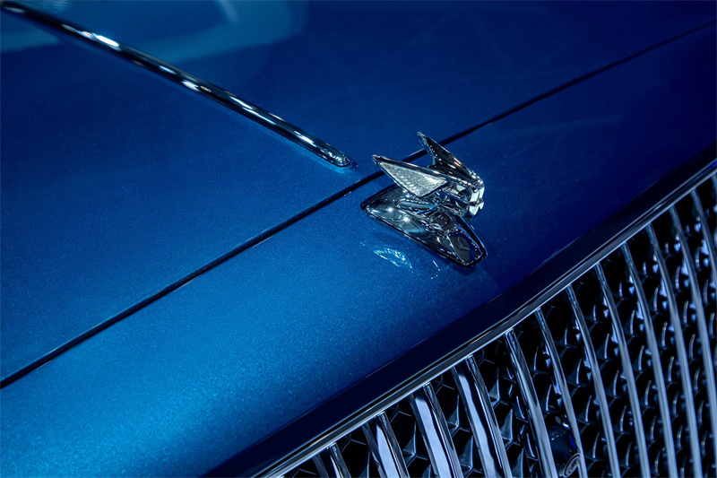 展車外觀采用天鵝絨紅(Black Velvet)漆面,搭配新款22英寸十幅鋁合金拋光輪轂。直瀑式格柵設計(Vertical Vane Grille)兼?zhèn)鋬?yōu)雅氣韻與凜然耀目的視覺效果。內(nèi)飾皮革運用亞麻白(Linen)和板球紅(Cricket Ball)的精妙碰撞,亞麻白鋼琴漆飾面呈現(xiàn)雅致光澤,帶有“Azure”字樣的雅度版車型專屬徽標和鑲嵌飾件貫穿于車身及內(nèi)飾設計之中,盡顯優(yōu)雅雋永的美學格調(diào)。