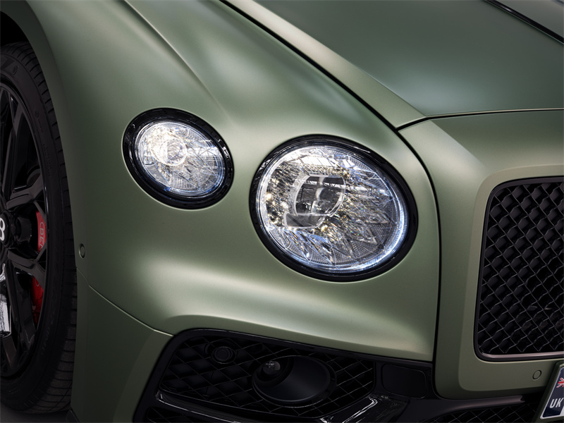 啞光車身漆面的獨特之處在于其與光粒子的相互作用方式——不同于亮色飾面的直接反射,它能使光散射在車身表面,從而使啞光漆面能以亮色飾面無法實現的方式,凸顯賓利汽車的造型線條。